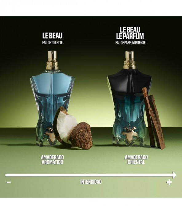 Le Beau Le Parfum, el nuevo perfume de hombre original e intenso de Jean Paul Gaultier. Si Jean Paul Gaultier creó este nuevo Le Beau Le Parfum naturalmente perfecto desnudo, ¡no fue para vestirlo! Aunque hay que decir que, en su Jardín del Edén, la naturaleza es tan sabia y generosa con los músculos de su frasco lacado en negro y verde que una hoja de parra dorada recogida de su icónica lata es suficiente atuendo para él. Y si la tentación de su nuevo eau de parfum intenso es aún más sensual, mucho mejor: aquí todos los pecados están permitidos. Basta con disfrutar del fruto prohibido de su fresca y adictiva fragancia amaderada de ámbar. El frasco de la tentación: cuando uno se siente bien con su cuerpo, ¿qué puede ser más hermoso que mostrarse desnudo? El torso musculoso, la virilidad del vidrio y una hoja de parra dorada, solo por pudor. Seguro y desinhibido, Le Beau Le Parfum lo sabe y lo demuestra. Su intensa fragancia y su degradé de negro lacado a verde transparente son suficientes para cautivar tus sentidos, cubierto por la icónica lata metálica de Gaultier para ser descubierto sólo por los más atrevidos. Cada adicción tiene su secreto. La de este eau de parfum intenso amaderado de ámbar se cosecha en el Jardín de Gaultier. Y conjuga con audacia la poderosa virilidad de la madera de sándalo y del haba tonka, la sensualidad del ámbar gris y la frescura del jengibre y la piña. Ahora estás desnudo frente al deseo. Quien sucumbe al pecado de este eau de parfum intenso lo esparce en abundancia por el cuello, el torso y las muñecas. Tan fresco y sensual en la piel como en la ropa, este eau de parfum intenso atraerá la atención vayas donde vayas, gracias a su adictivo amaderado de ámbar que potencia el carisma. Un placer paradisíaco y deliciosamente prohibido.