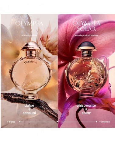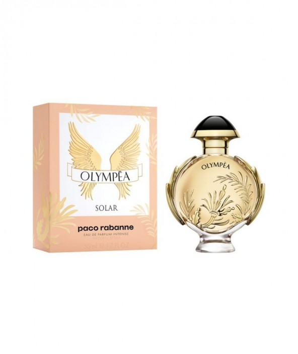 La belleza en su zenit. Olympéa Solar, la nueva Eau de Parfum Intense de Paco Rabanne. La fragancia de una Diosa amazona. Fuerte e independiente, Olympéa brilla con una energía solar. Una verdadera belleza en su zenit, majestuosa y victoriosa. El resplandor de una sensualidad luminosa revela sus múltiples facetas. Flores brillantes bajo el sol. Un radiante ramo de flores impregnado de una sorprendente sensualidad de las notas aromáticas y el musgo de roble solar. Descubre la chispeante energía de piel de mandarina y naranja caldeadas por el ylang ylang y flores blancas. Una inmediata sensación de transportarte un lugar lleno de luz. Una corona de laureles triunfantes rodea el nuevo frasco de Olympéa. La radiante intensidad de su fragancia está inspirada directamente en el diseño de moda de Paco Rabanne, representada en un un dibujo dorado moldeado directamente sobre el frasco. Para coronar esta poderosa fragancia, un tapón negro que brilla con su propia luz oscura. En la parte inferior, luce un pedestal para elevar su interpretación del sol naciente. De la familia Olfativa Floral Ámbar. Notas de salida: Flor de Naranjo. Notas de corazón: Musgo de Roble. Flor de Tiaré. Notas de fondo: Ylang ylang. Benjuí.