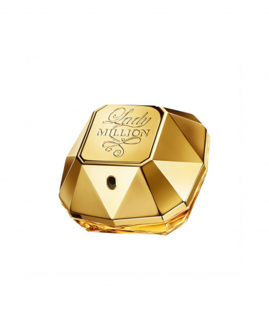 El frasco Lady Million está inspirado en los tejidos de Paco Rabanne. Un frasco elegante, redondeado y extremadamente femenino. Con un dorado un poco más suave que el masculino, el frontal metálico en relieve combina con un vidrio facetado con el objetivo de resaltar el jugo. Es la pareja perfecta para el lingote de 1 million: Un diamante dorado, fuerte y con una firma segura."