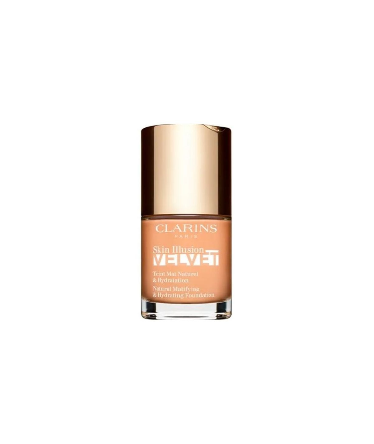 Base de maquillaje Sérum de acabado mate aterciopelado. Unifica la tez dejándola con un acabado perfectamente natural. Solo unas gotas de Skin Illusion Velvet son suficientes para unificar el tono de la piel al instante, atenúa los brillos y difumina las imperfecciones. Su textura es ligera, cómoda y aterciopelada, deja la piel suave como un melocotón. Su innovadora fórmula a base de 7 extractos de plantas, es una auténtica fuente de tratamientos beneficiosos para la piel. Resultado: Piel más bonita día tras día. Ideal para todo tipo de pieles. De textura fluida. Efecto piel desnuda que permite que la piel respire. Una base de maquillaje ligera, suave y confortable. Con Complejo anticontaminación de Clarins.