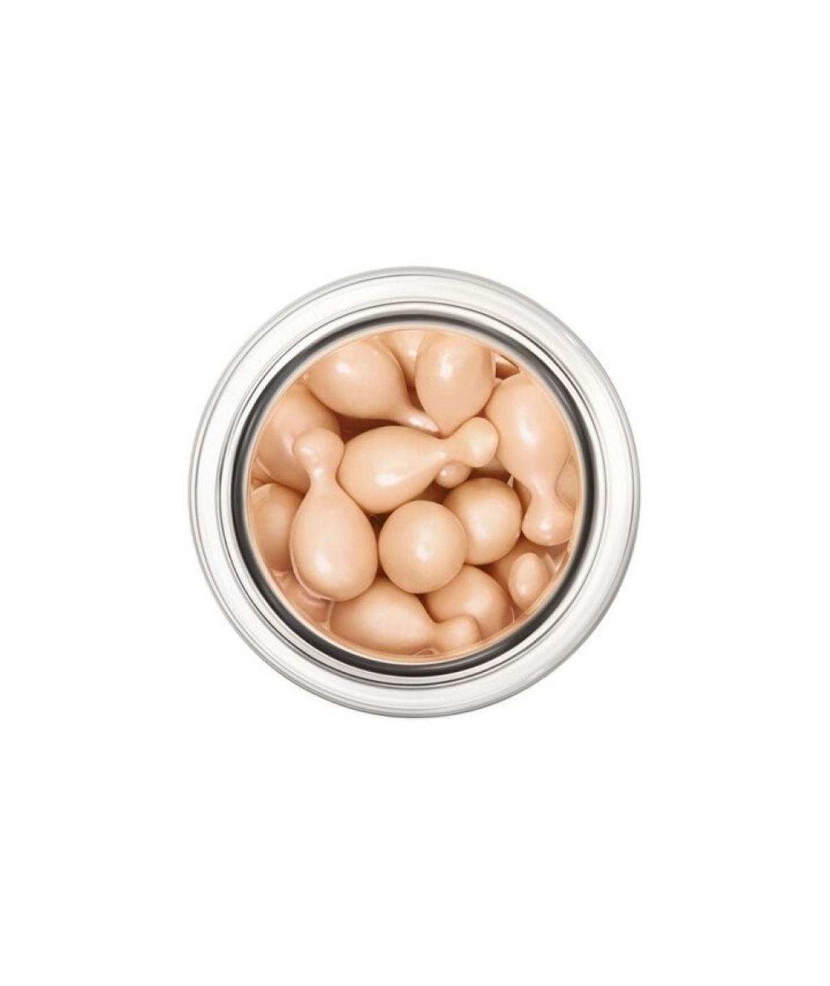 El primer maquillaje en cápsula que potencia la luminosidad facial y es eco-sostenible, te ofrece un efecto buena cara al momento. El 94% de ingredientes son de origen natural. Cada cápsula contiene la cantidad perfecta de base de maquillaje para cubrir todo el rostro y cuello. Textura hidratante gracias al aceite de nuez de melocotón, cobertura ligera, acabado natural y radiante. Contiene 30 cápsulas biodegradables y existe un formato de recarga disponible para poder reutilizar el envase. Sus beneficios son la luminosidad, 24 horas tu piel hidratada y protección anti-polución. El método de empleo es sencillo. En primer lugar, se abre la cápsula y se gira la parte pequeña hasta que se desprenda. Luego se aplica la base sobre el rostro con las yemas de los dedos con pequeños toques. A continuación, se debe extender desde el centro de la cara hacia los laterales, de sien a sien. Para fijar, se debe presionar un poco con las palmas de las manos.