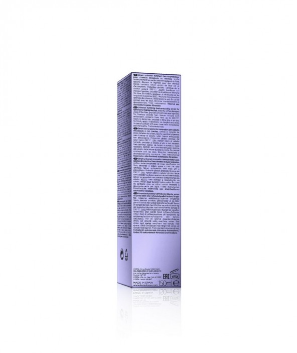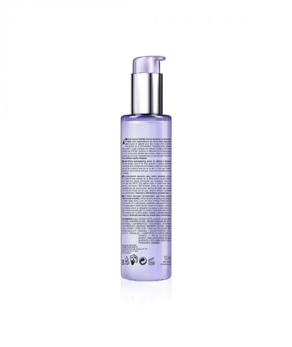 Beneficios del producto: Unifica al instante las zonas dañadas del cabello rubio. Crea un cabello suave. Protector térmico con termoprotección a 450 °F. Ingredientes clave: Ácido hialurónico - Este ácido ultra concentrado fortalece el cabello y previene su futura rotura. Flor de Edelweiss - Rico en antioxidantes para proteger el cabello de los daños diarios y suavizar las fibras capilares sensibilizadas.