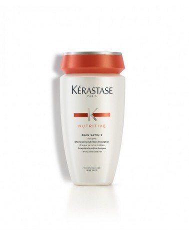 Kérastase Champú Bain Satin 2: Champú nutritivo para cabellos secos y sensibilizados. Beneficios del producto: Nutre el cabello ligeramente seco. Crea un cabello suave. Nutrición esencial para un cabello saludable.