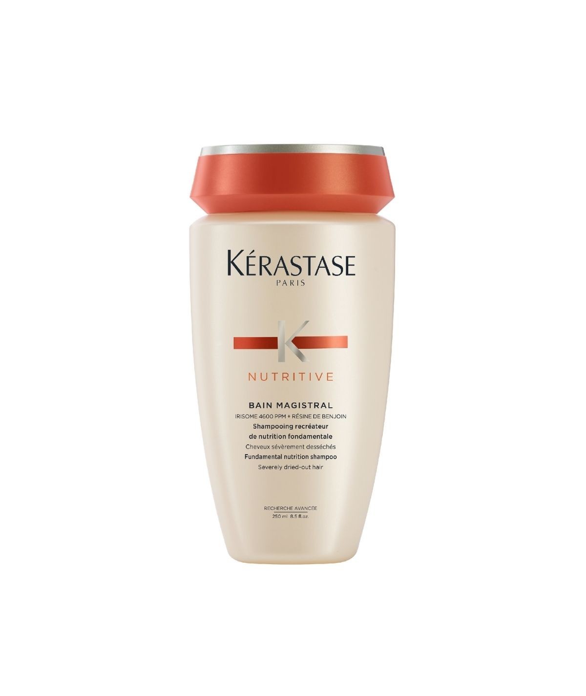 Kérastase Champú Bain Magistral: Baño de nutrición fundamental para cabello de seco a muy seco. Beneficios del producto: Elimina el apelmazamiento. Nutrición esencial para un cabello saludable. Premiado en los Glammy Awards de abril de 2017 de la revista Glamour como "Mejor producto de cuidado capilar para cabello rizado/indisciplinado".