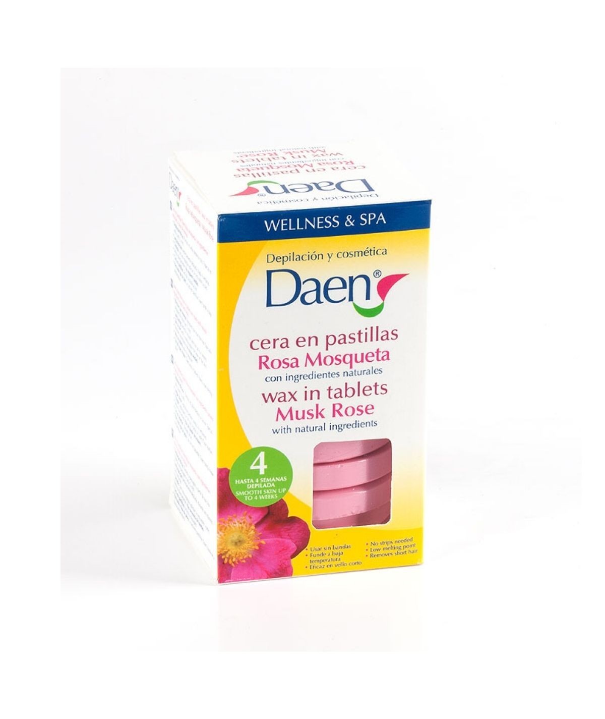 Cera depilatoria en formato pastillas. Se funde a baja temperatura y elimina incluso el vello más corto. Hecha con ingredientes de origen vegetal. Sin parabenos.