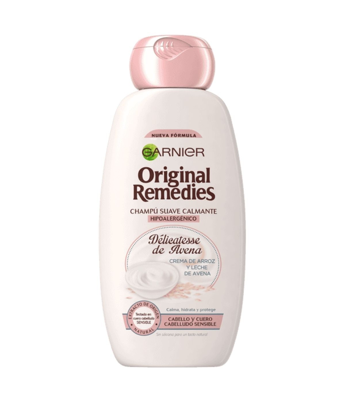 Champú calmante y nutritivo. Ideal para todo tipo de cabello, y para personas con cuero cabelludo sensible. Su fórmula con crema de arroz y leche de avena hidrata, calma y suaviza. Hidrata tu cabello de raíz a punta sin apelmazar.