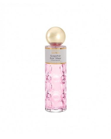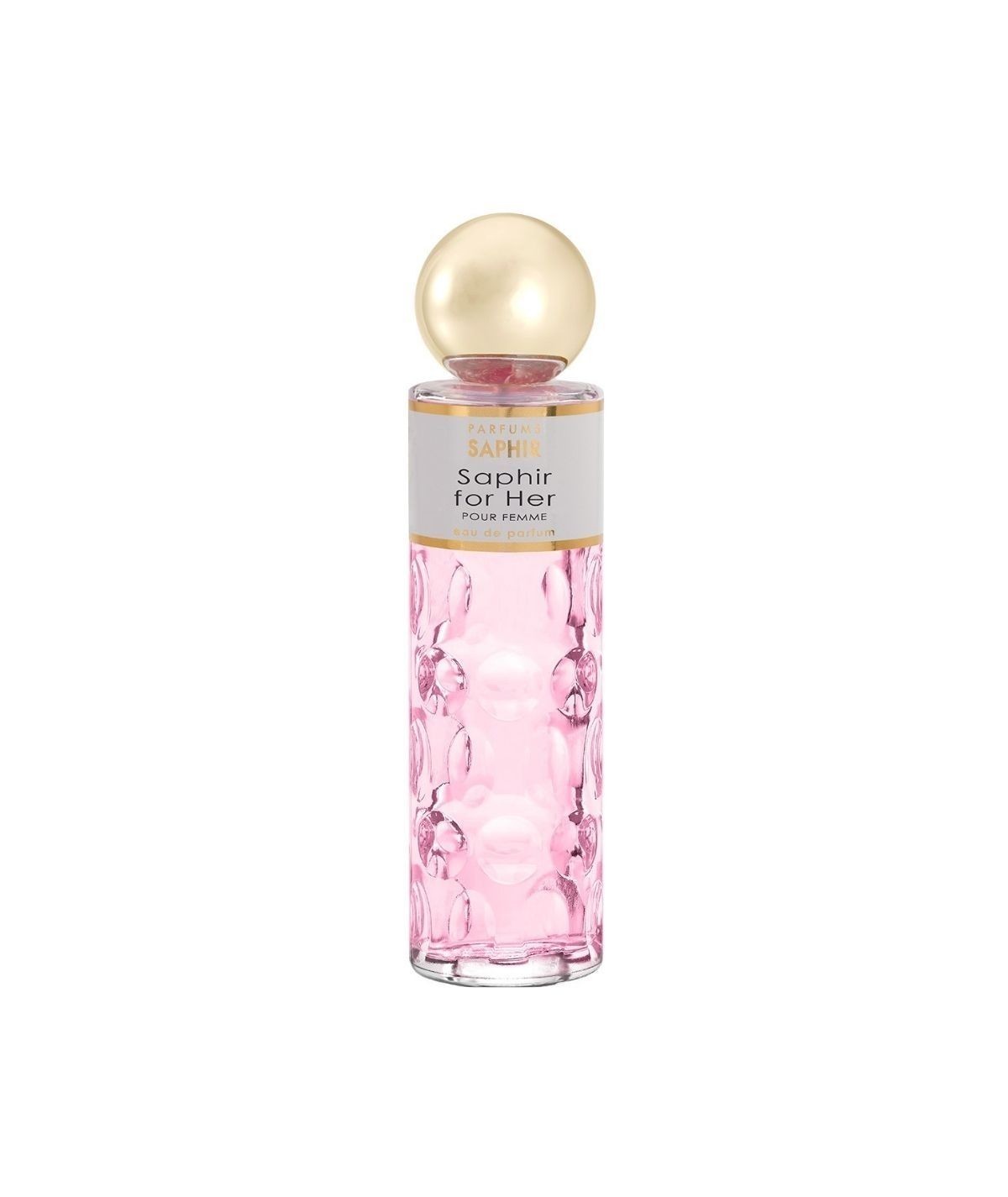Saphir For Her es una fragancia que pertenece a la familia olfativa llama FLORAL. Sus toques cítricos lo hacen un perfume fresco. Su pirámide olfativa empieza con notas de melocotón, continúan con detalles de rosa y termina con notas de Pachulí. Te transportará a un entorno elegante, fresco, y floral. Las aguas de perfume de Saphir son perfectas para mujeres que quieren cuidarse el día a día, ya que son fragancias agradables y duraderas. Con solo aplicar unos toques en las muñecas y el cuello, conseguirás que la fragancia te acompañe todo el día.