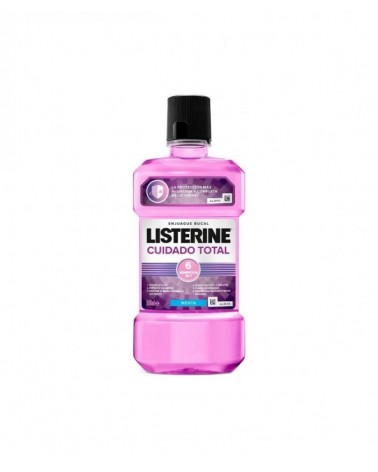 Elimina los gérmenes que causan la placa bacteriana y el mal aliento con el Enjuague Bucal Listerine Cuidado Total. Gracias a su fórmula basada en aceites esenciales, proporciona 24 horas de protección contra la placa y la tranquilidad de un aliento fresco y duradero. El enjuague bucal Listerine Mentol previene y reduce la placa, una de las principales causas de la inflamación de las encías. Elimina las bacterias entre los dientes, y refresca el aliento. Fortalece los dientes, mantiene el blanco natural de los dientes, ayuda a prevenir la gingivitis, elimina los gérmenes y proporcione un aliento fresco y duradero. Para buenos resultados Listerine recomienda utilizar el enjuague bucal dos veces al día. Verter 20ml en un vaso, enjuagar los dientes y encías durante 30 segundos y escupir. No recomendado para niños menos de 12 años.