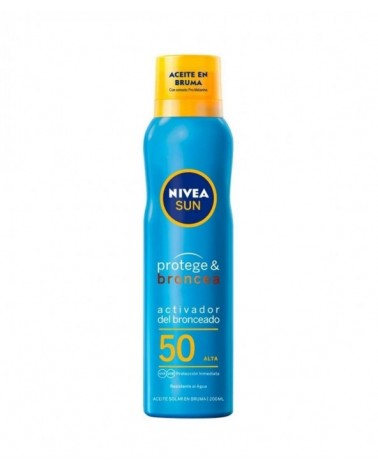 Spray con protección solar Spf50. Te ayuda a obtener un bronceado perfecto y a proteger tu `piel al mismo tiempo, no sacrifiques una cosa por la otra cuando puedes tenerlo todo. Protege contra los rayos UVA y UVB. Su fórmula potencia el bronceado sin necesidad de autobronceador. Resistente al agua, deja la piel lisa y suave.
