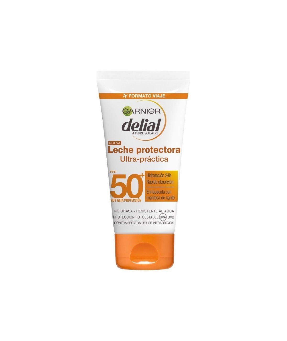 Leche hidratante con protección solar Spf50. Esta crema es ideal para cuidar tu piel y cuidar el bronceado del verano. Protege tu piel contra los rayos Uva y UVB.