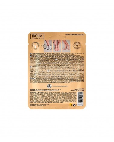 Repara e hidrata intensamente los pies secos y agrietados. Estos calcetines mascarilla estan compuestos por una fórmula clean elaborada a partir de un 93% de ingredientes certificados de origen natural. Sus activos principales como el Melocotón, funciona como acción antioxidante e hidratante mientras que la Manteca de Karité tiene un gran poder de hidratación y nutrición que ayuda a mejorar la elasticidad de la piel, a la vez que la repara y la regenera. Su tecnología de doble capa crea un efecto sauna para potenciar los resultados. Su formulación no contiene alérgenos y es 100% vegana. Resulta ideal para pies secos. Se recomienda utilizar como mínimo una vez por semana.