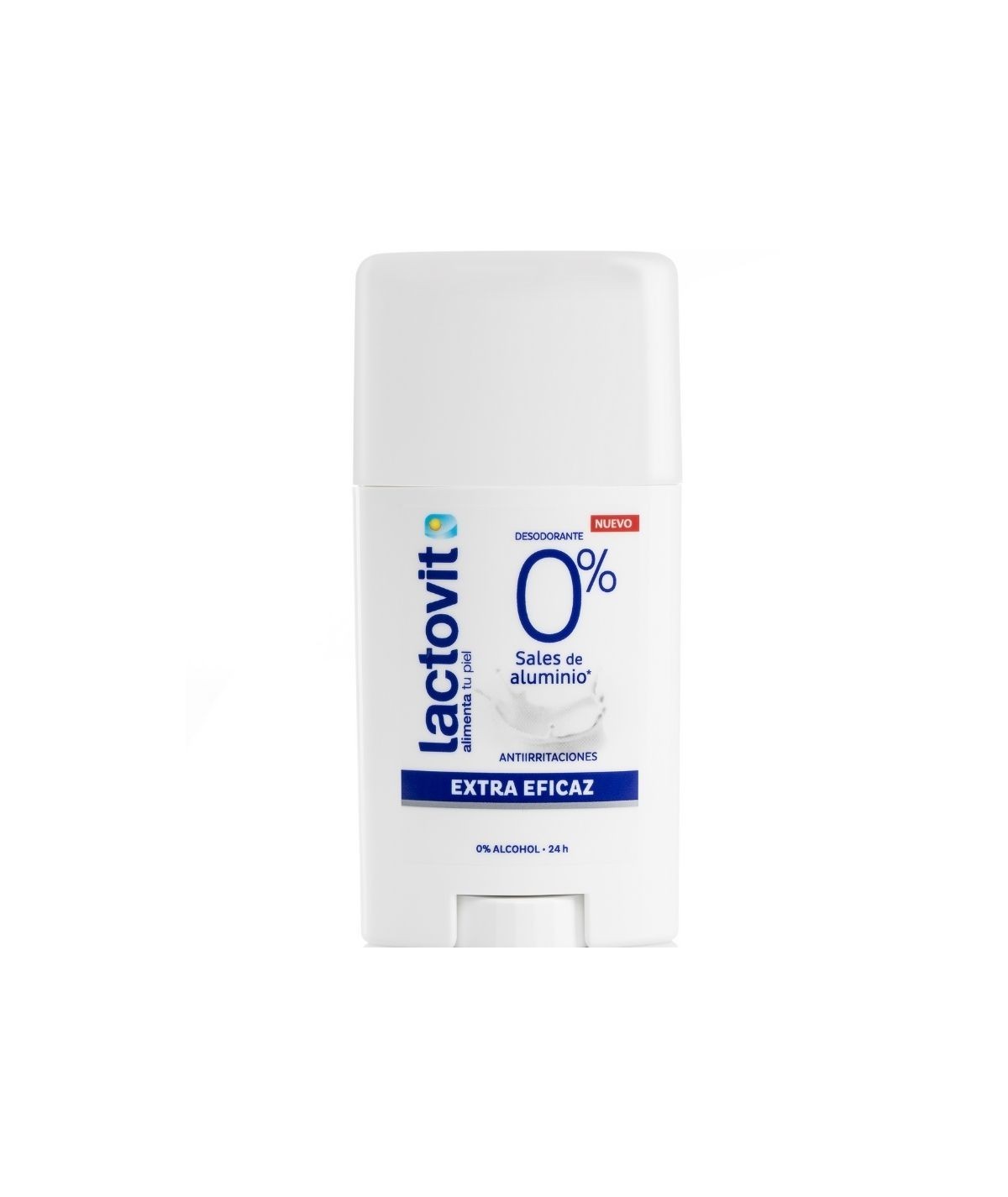 Disfruta del Desodorante Extra Eficaz 0% en Stick de Lactovit. Perteneciente a la Gama 0%, está elaborado sin alcohol y sin sales de aluminio, una eficacia respetuosa con tu piel mientras alivia las irritaciones. Día tras día sentirás tus axilas suaves y secas gracias a su patentada tecnología con componentes de la leche y con una eficaz duración de 48h. Los desodorantes Lactovit cuidan tu piel con lo mejor de la leche: sus fórmulas incorporan una tecnología única que ofrece el equilibrio perfecto entre eficacia y cuidado.