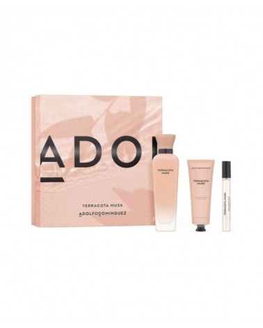 Conecta con tu sensualidad innata. Se funde en ti, te abraza. Mágica. Envolvente. Nada más. Así es la fragancia Terracota Musk de Adolfo Domínguez. Un perfume que pertenece a la familia olfativa Gourmand Musk. Terracota Musk tiene una salida con notas de lichi, Freesia y bergamota, que pasa por un corazón de flor de azahar, Tiaré y jazmín, culminando con notas de salida de iris, ambrete, vainilla y Musk. Terracota Musk hace salir la sensualidad que toda mujer lleva dentro. Se funde con tu piel creando el aroma perfecto capaz de envolver a todos de una manera locamente mágica. El Eau de Parfum Terracota Musk de Adolfo Domínguez tiene un 91% de ingredientes de origen natural. El kit incluye: eau de parfum 120ml + eau de parfum 10ml + crema de manos. Importante: -Existen distintos modelos de este estuche, por lo que es posible que el que recibas no corresponda con el de la foto. -Los productos principales que contienen continúan siendo los mismos. (Los accesorios extras pueden ser distintos a los de la foto).