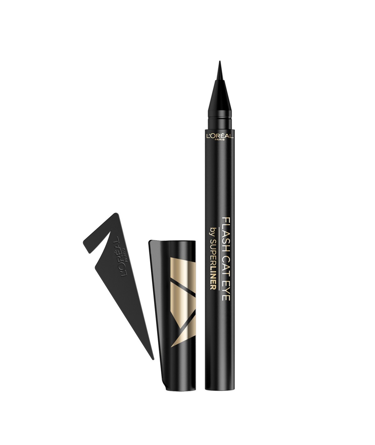 L'Oréal Paris Superliner Flash Cat Eye eyeliner líquido negro con cepillo de fácil aplicación resistente al agua con aplicador preciso para un rabillo del ojo perfecto