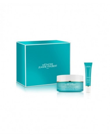 -L'Hydro Active 24H. Crème Confort Tri-Hydratante P.Normales à Sèches 50 ml: Un tratamiento denso de textura envolvente, enriquecida con aceite de rosa mosqueta, es ideal para las pieles secas. Reestructura la barrera cutánea, nutre y revitaliza la piel intensamente, ofrece una sensación de comodidad, calma la piel y la deja luminosa. -L'Hydro Active 24H. Gel Crème Cooling Regard Tri-Hydratant 15 ml: Este gel crema fresco y sin perfumes, especialmente diseñado para la frágil zona del contorno de los ojos, combate la fatiga y despierta e ilumina la mirada. Las arrugas y bolsas se atenúan de inmediato gracias a su activo especifico Eyeglow. Con esta auténtica dosis extra de energía, la mirada recupera su dinamismo y su vitalidad. Méthode Jeanne Piaubert revoluciona la hidratación de la piel gracias al Complejo HYALURO-3 ,compuesto de 3 Ácidos Hialurónicos con peso molecular diferente. 3 ACCIONES & 3 BENEFICIOS Cada uno de estos 3 ácidos Hialurónicos difunde su acción específica en las células cutáneas: 1. Estimulación de la síntesis de Ácido Hialurónico global, la mayor reserva de agua de la piel. 2. Refuerzo de la cohesión celular, principal barrera a la deshidratación. 3. Reactivación de las defensas y de la cicatrización, esencial para una circulación óptima de agua.