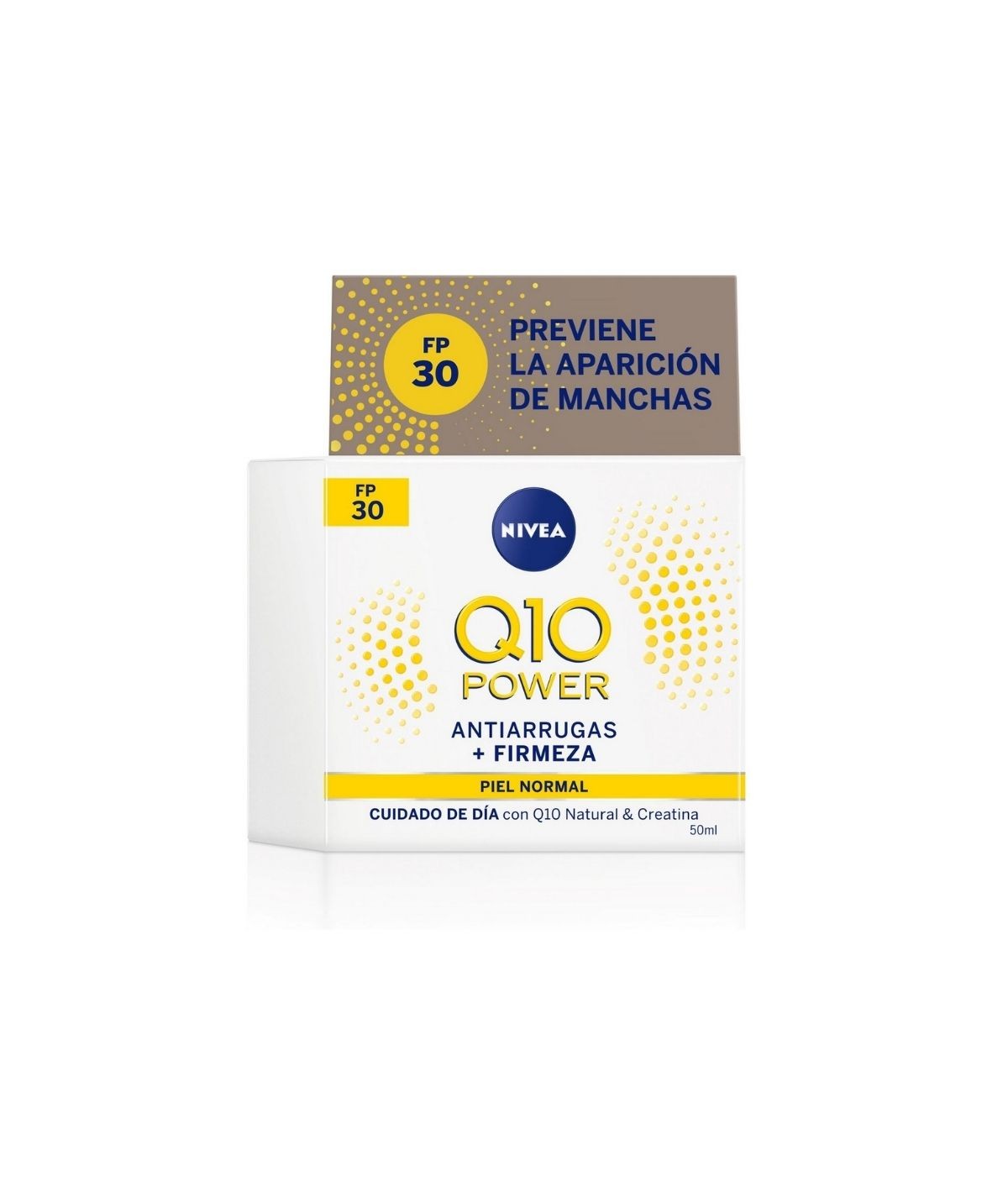 La fórmula patentada de NIVEA Q10 Plus Antiarrugas Cuidado de Día FP30, combina la coenzima Q10 con 10 veces más de Creatina (comparado con la fórmula anterior) estimulando la producción de colágeno de las células de la piel. Combate eficazmente las arrugas y líneas de expresión y deja la piel visiblemente más firme. Con FP30 y protección UVA/UVB, ayuda a proteger la piel contra la formación de arrugas inducidas por el sol y previene la aparición de manchas. Dermatológicamente comprobado.