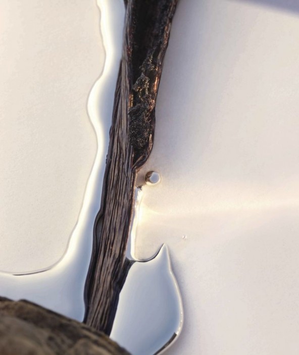 Un adorno dorado rodea el frasco de vidrio como si se tratara de una pieza de joyería, mientras que el jugo rosado captura la luz, siendo el reflejo de la naturaleza aspiracional y vital de ALIVE. "