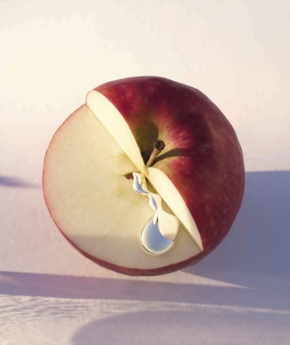 Un adorno dorado rodea el frasco de vidrio como si se tratara de una pieza de joyería, mientras que el jugo rosado captura la luz, siendo el reflejo de la naturaleza aspiracional y vital de ALIVE. "