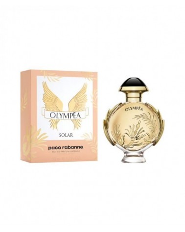 La belleza en su zenit. Olympéa Solar, la nueva Eau de Parfum Intense de Paco Rabanne. La fragancia de una Diosa amazona. Fuerte e independiente, Olympéa brilla con una energía solar. Una verdadera belleza en su zenit, majestuosa y victoriosa. El resplandor de una sensualidad luminosa revela sus múltiples facetas. Flores brillantes bajo el sol. Un radiante ramo de flores impregnado de una sorprendente sensualidad de las notas aromáticas y el musgo de roble solar. Descubre la chispeante energía de piel de mandarina y naranja caldeadas por el ylang ylang y flores blancas. Una inmediata sensación de transportarte un lugar lleno de luz. Una corona de laureles triunfantes rodea el nuevo frasco de Olympéa. La radiante intensidad de su fragancia está inspirada directamente en el diseño de moda de Paco Rabanne, representada en un un dibujo dorado moldeado directamente sobre el frasco. Para coronar esta poderosa fragancia, un tapón negro que brilla con su propia luz oscura. En la parte inferior, luce un pedestal para elevar su interpretación del sol naciente. De la familia Olfativa Floral Ámbar. Notas de salida: Flor de Naranjo. Notas de corazón: Musgo de Roble. Flor de Tiaré. Notas de fondo: Ylang ylang. Benjuí.