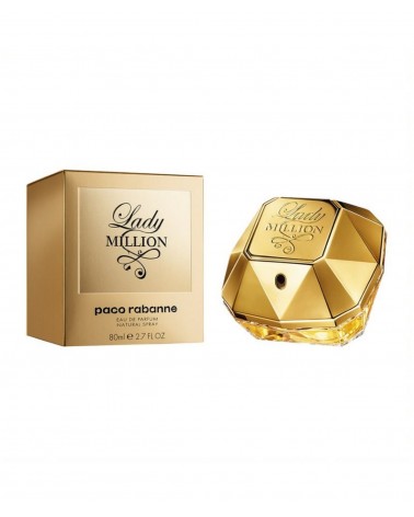 El frasco Lady Million está inspirado en los tejidos de Paco Rabanne. Un frasco elegante, redondeado y extremadamente femenino. Con un dorado un poco más suave que el masculino, el frontal metálico en relieve combina con un vidrio facetado con el objetivo de resaltar el jugo. Es la pareja perfecta para el lingote de 1 million: Un diamante dorado, fuerte y con una firma segura."