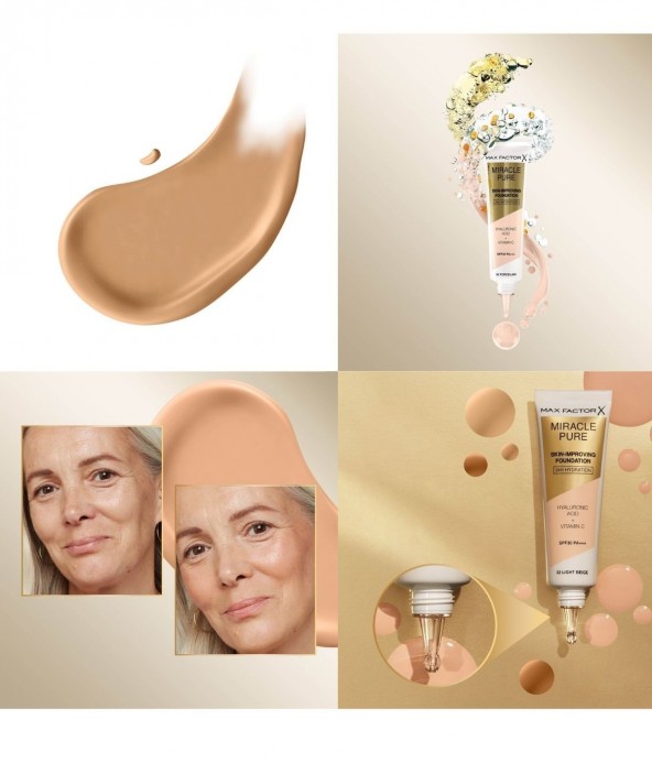 Miracle Pure foundation es la primera base de maquillaje de cuidado de la piel de Max Factor.