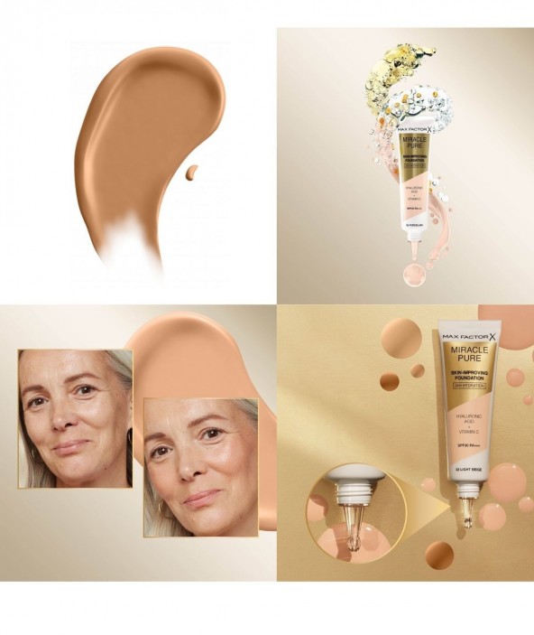 Miracle Pure foundation es la primera base de maquillaje de cuidado de la piel de Max Factor.