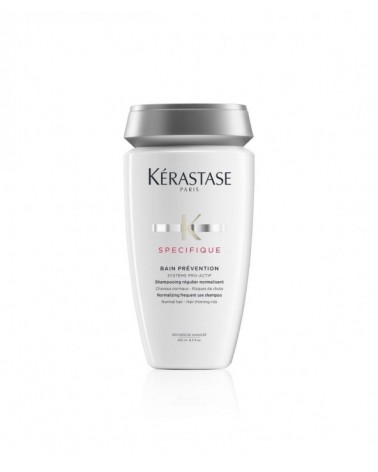 Kérastase Champú Bain Prévention: Champú normalizador de uso frecuente que equilibra el cuero cabelludo para evitar que el cabello se debilite. Beneficios del producto: Regula los desequilibrios del cuero cabelludo Solución preventiva para la caída del cabello. Activa la microcirculación. Texturiza la fibra capilar. Efecto volumen inmediato. Con propiedades estimulantes: estimula la producción de la fibra capilar. Engrosa la fibra capilar.
