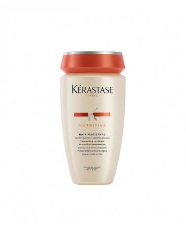 Kérastase Champú Bain Magistral: Baño de nutrición fundamental para cabello de seco a muy seco. Beneficios del producto: Elimina el apelmazamiento. Nutrición esencial para un cabello saludable. Premiado en los Glammy Awards de abril de 2017 de la revista Glamour como "Mejor producto de cuidado capilar para cabello rizado/indisciplinado".