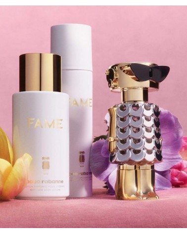Experimente la fragancia sensual y femenina FAME con un desodorante en spray de Paco Rabanne. El jazmín excepcionalmente fresco, el sabroso mango y el cremoso incienso dejan en la piel un perfume delicado durante todo el día