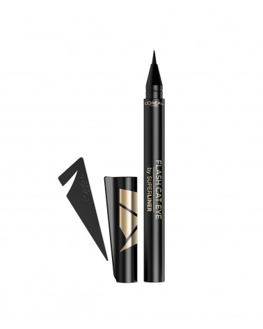 L'Oréal Paris Superliner Flash Cat Eye eyeliner líquido negro con cepillo de fácil aplicación resistente al agua con aplicador preciso para un rabillo del ojo perfecto