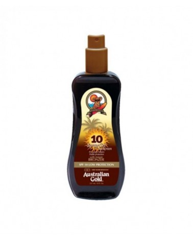 Bronceador corporal con protección solar Spf10. Obtén un color caramelo en tu piel y lúcete este verano. Mantiene tu piel hidrata y protegida de los rayos UVA y UVB. Contiene aceites exóticos que hidratan, suavizan, calman y acondicionan. Resiste al agua.