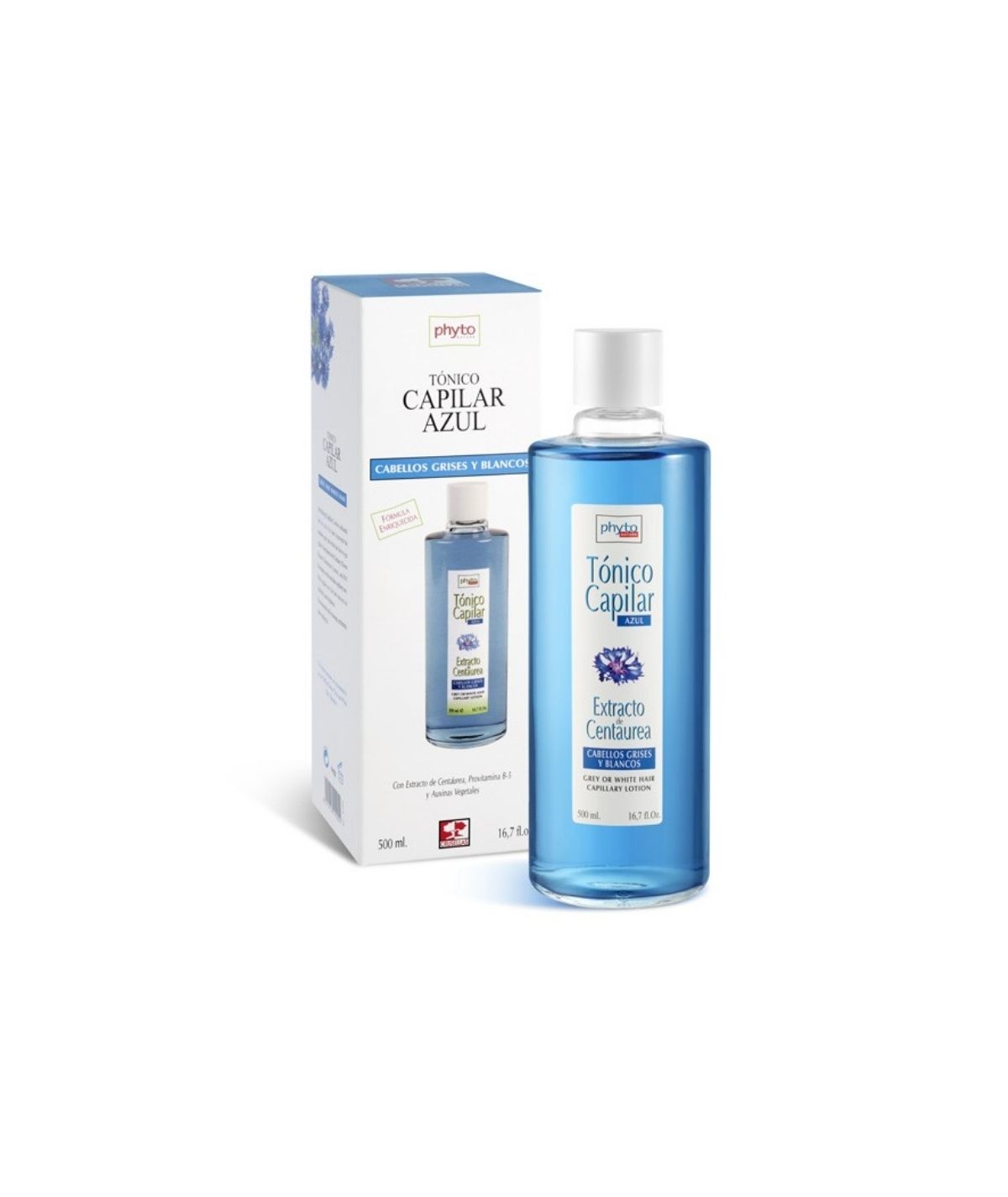 Tónico matizador azul para cabellos blancos y grises. Contiene extractos de centáurea, que previene los tonos amarillos y realza los grises y blancos. Revitaliza el cabello con su fórmula con provitamina B5 y auxinas vegetales. No engrasa ni reseca el cabello. Su perfume es discreto, por lo que no molesta. Se recomienda utilizar en el cabello limpio y húmedo efectuando un suave masaje en el cuero cabelludo.