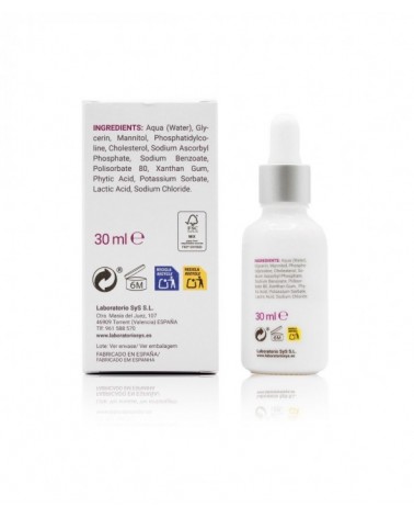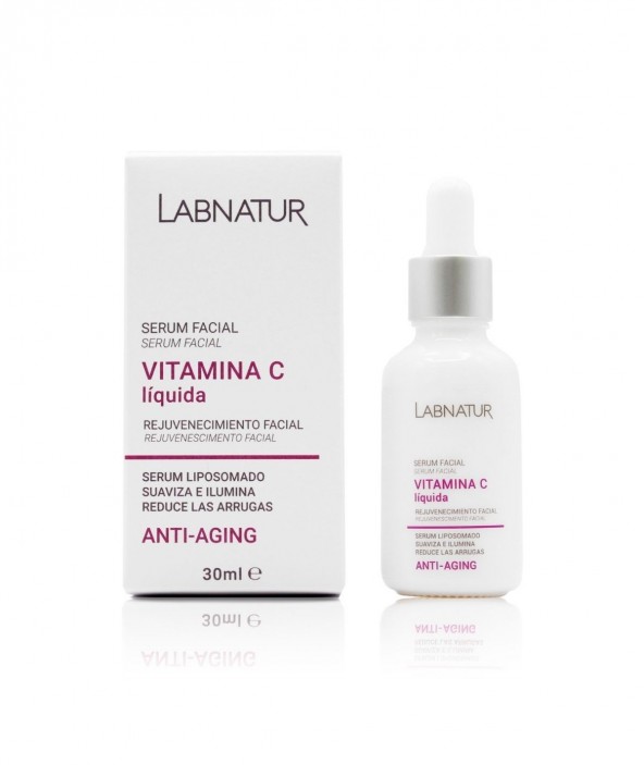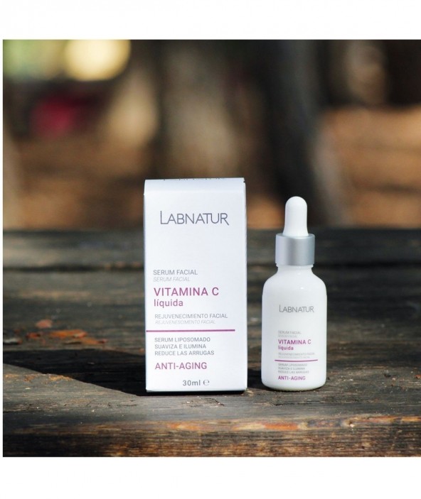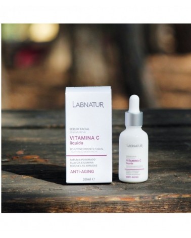 Reduce las líneas de expresión y las arrugas con la vitamina C líquida de Labnatur. La Vitamina C actúa como un potente antioxidante, aportando una mayor luminosidad, elasticidad y densidad a la piel. Además, tiene una alta capacidad de penetración gracias al efecto de los liposomas de nueva generación. Además, promueve la síntesis de colágeno, combate los daños ocasionados por el sol, mejorando el tono de la piel. Reduce el envejecimiento de la piel y ayuda al proceso de cicatrización de las heridas. Neutraliza los radicales libres y protege la piel de la contaminación, por ello suaviza e ilumina el rostro. Producto natural y vegano. Sin alérgenos ni parabenos. Envase de vidrio 100% reciclable. Testado dermatológicamente.