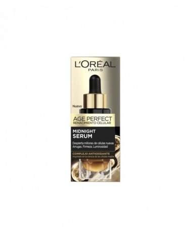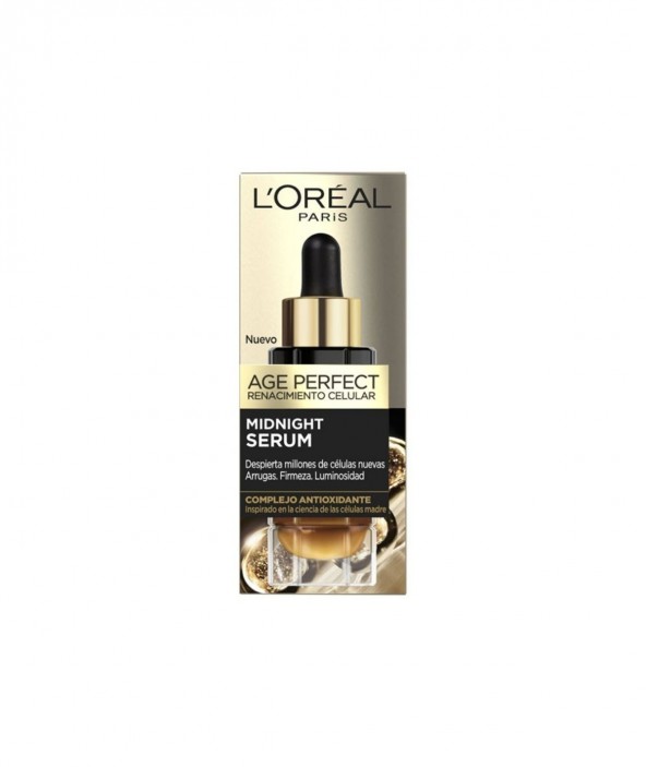 Sérum de noche Midnight Serum de L'Oréal. Un Sérum antienvejecimiento que establece un nuevo estándar en los sérums de lujo. Formulado con un exclusivo complejo antioxidante, este potente Sérum nocturno actúa cuando la piel alcanza su máximo nivel de renovación celular. Millones de células nuevas se revelan para una piel visiblemente más firme, radiante y joven. Eficaz para todos los tonos y tipos de pieles, incluso sensibles.