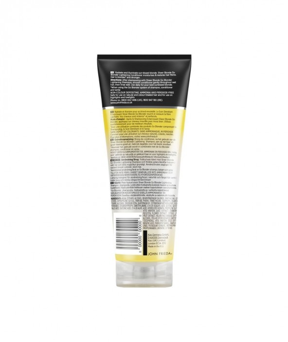 Transforma el cabello apagado en un cabello iluminado por el sol. Aclara el cabello rubio gradualmente, para obtener un aspecto luminoso sin resecarlo. Su fórmula con complejo aclarante natural con cítricos y camomila, reduce los pigmentos del cabello suavemente. Ideal para el uso diario. No contiene amoníaco ni peróxido. Seguro para los rubios naturales, teñidos o con mechas.