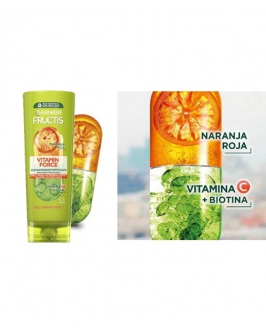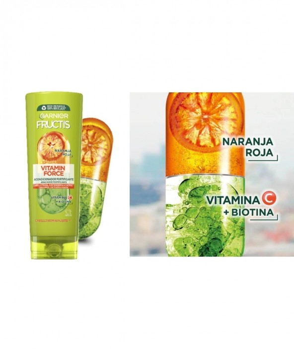 Nuestro acondicionador está potenciado por un superdúo de ingredientes, una superfruta de origen natural, la naranja roja; y poderosos activos científicos, la Vitamina C y Biotina, para fortalecer el cabello de raíces a puntas. ¡Eficacia comprobada! tu cabello visiblemente más fuerte y sano. Garnier se compromete a mejorar continuamente el impacto medioambiental y social de nuestros productos a lo largo de su ciclo de vida. Esto incluye la realización de mejoras durante las fases de producción y de uso. También nos comprometemos a facilitarte el acceso a estos datos con total transparencia para ayudarte a tomar decisiones más informadas sobre los productos que eliges y por eso lanzamos un Sistema de Etiquetado de Impacto de Producto.