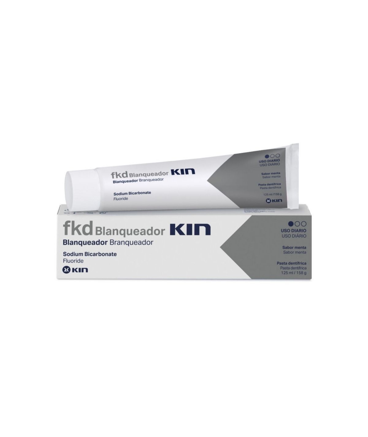 Pasta de dientes blanqueadora de uso diario formulada con bicarbonato sódico micropulverizado, para la eliminación progresiva de las manchas sin dañar el esmalte. Ayuda en la recuperación del blanco natural de los dientes. Controla y previene la formación de sarro o cálculo dental gracias a su fórmula con pirofosfato sódico. El flúor ayuda en la prevención de la caries. En personas con encías sensibles, se aconseja cepillarlas de manera suave y alternar el uso de FKD dentífrico blanqueador con su dentífrico habitual. Si nota alguna molestia durante o tras el cepillado, interrumpa su uso. El cuidado bucal está adquiriendo cada vez más importancia, tanto higiénica como estéticamente. Una boca sana no solo constituye una manifestación de evidente salud y juventud, sino que afecta también en nuestras relaciones sociales. Es por ello que el interés por mejorar las técnicas y el uso de productos de blanqueamiento dental ha aumentado considerablemente.