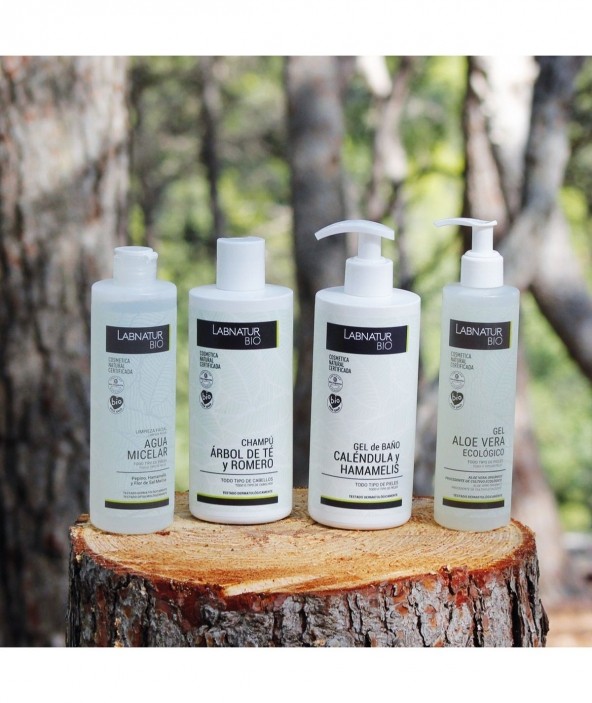 Con el Gel de Baño Labnatur Bio Caléndula y Hamamelis podrás proteger tu piel, mientras la hidratas y la reparas al máximo. Reúne las propiedades de los principios activos que la componen, entre ellos encontramos Aloe Vera, Hamamelis y Caléndula. La caléndula regenera y nutre la piel, el Hamamelis actúa con antioxidante, purificante y calmante, y el aloe vera, aporta un sin número de beneficios. Su fórmula contiene un alto porcentaje de ingredientes de origen natural, y por supuesto, procedentes de una agricultura ecológica. No contiene parabenos, siliconas, PEG's ni derivados del petróleo. Sin Ingredientes transgénicos o nanopartículas. No testado en animales. No han sido irradiados. Producidos con energías renovables. Testados dermatológicamente. Apta para veganos. Cosmética natural certificada.