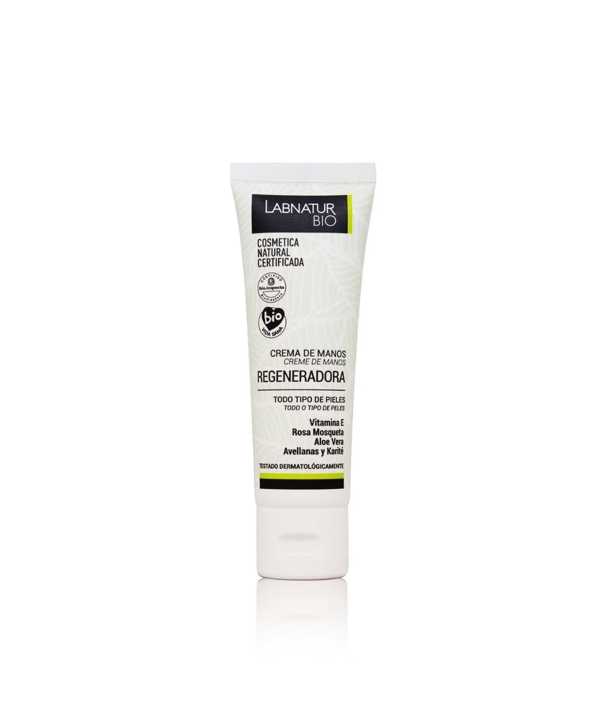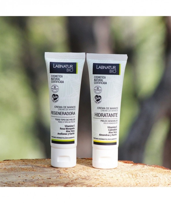 Protege y suaviza la piel de tus manos con la Crema de manos Labnatur Bio de rápida absorción. Hidrata y regenera tu piel. Sus principios activos: El aceite de avellanas, destaca por sus propiedades suavizantes y cicatrizantes gracias al calcio, magnesio y potasio, proporcionando además mayor elasticidad y firmeza. El aceite de rosa Mosqueta, actúa como cicatrizantes, trata las estrías y la flacidez cutánea, además actúa como antienvejecimiento e hidratante. El aloe vera hidrata, tonifica, calma y aporta suavidad. La manteca de Karité, hidrata y nutre la piel en profundidad, aportando elasticidad y firmeza en la piel. La vitamina E actúa como antioxidante y como agente acondicionador, reduciendo así la aparición de estrías mientras mejora el tono de la piel. Su fórmula contiene un alto porcentaje de ingredientes de origen natural, y por supuesto, procedentes de una agricultura ecológica. No contiene parabenos, siliconas, PEG's ni derivados del petróleo. Sin Ingredientes transgénicos o nanopartículas. No testado en animales. No han sido irradiados. Producidos con energías renovables. Testados dermatológicamente. Apta para veganos. Cosmética natural certificada.