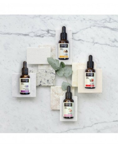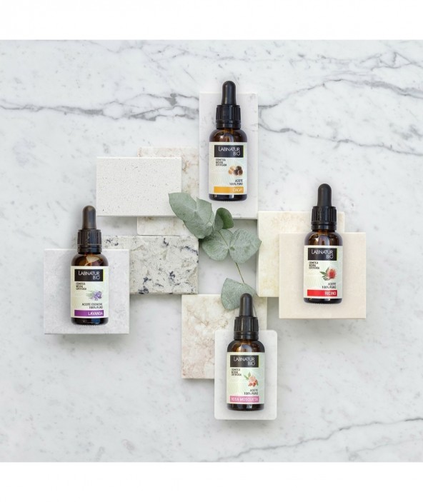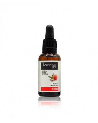 Aceite 100% puro. Actúa como hidratante y antiarrugas natural. Sus propiedades fungicidas, antiinflamatorias y antibacterianas lo hacen un excelente desmaquillante. Disuelve los restos de grasa y suciedad causantes de los puntos negros y el acné. Más del 70% de la composición del aceite de ricino Labnatur Bio es ácido ricinoleico, por lo que está libre de componentes químicos. Activa el crecimiento del pelo y del vello. Con el podrás lucir unas cejas y pestañas más pobladas. Tu melena podrá estar más brillante y con vida que nunca, libre de puntas secas y abiertas. Déjalo durante toda la noche y lávalo en la mañana. Trata las infecciones como el acné o las quemaduras gracias a sus propiedades antibacterianas y antifúngicas. Ayuda a regenerar y fortalecer las uñas quebradizas. Previene la aparición de arrugas y estrías ya que es rico en vitamina E y ácidos grasos, hidrata y nutre la piel forma natural y estimula la producción de elastina y colágeno. Su fórmula contiene un alto porcentaje de ingredientes de origen natural, y por supuesto, procedentes de una agricultura ecológica. No contiene parabenos, siliconas, PEG's ni derivados del petróleo. Sin Ingredientes transgénicos o nanopartículas. No testado en animales. No han sido irradiados. Producidos con energías renovables. Testados dermatológicamente. Apta para veganos. Cosmética natural certificada.